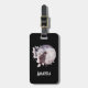 En bagagetagg med en vattenfärgsmålning av en svart katt och en lätt lila och rosa blommigt bouquet. Stå framför ett stort fullt måne. Snyggt och magi.