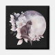 Händelselagnet med en vattenfärgsmålning av en svart katt och en lätt lila och rosa blommigt bouquet. Stå framför ett stort fullt måne. Snyggt och magi.
