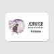 Namn bricka med en vattenfärgsmålning av en svart katt och en lätt lila och rosa blommigt bouquet. Stå framför ett stort fullt måne. Snyggt och magi.