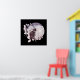 En poster med en vattenfärgsmålning av en svart katt och en lätt lila och rosa blommigt bukett. Stå framför ett stort fullt måne. Snyggt och magi.