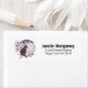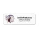 Adressetiketter med en vattenfärgsmålning av en svart katt och en lätt lila och rosa blommigt bouquet. Stå framför ett stort fullt måne. Snyggt och magi.