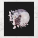 Flaska-etiketter med en vattenfärgsmålning av en svart katt och en lätt lila och rosa blommigt bouquet. Stå framför ett stort fullt måne. Snyggt och magi.