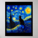 Black Cat on a Starry Night - Cat Lover Funny Van Poster