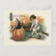 Black Cat Pumpkin Witch's Hat Broom Brev Vykort