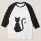En silhuett tecknad av en svart katt med grönt öga. En grönt stjärna hänger från kattens svan.