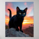 Black Cat Silhouette at Sunset Wall Art Poster