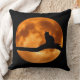 En svart katt som silhuggits mot ett rött måne på det underbara dekorativ kudde.