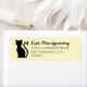 Adressetikett för returnummer med en slimmad svart kattsilhuett över bakgrunden för en pastellgult. Denna enkla och roligt utformning är perfekt för en kattälskare.