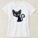 Tecknad illustration av katten med grönt ögon.