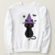 Black Cat Witch Halloween Lång Ärmad Tröja