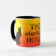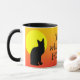 Det här är en ljus och färgstark Halloween mugg, med en svart kattsiluett framför en gult fullt måne. Bilden placeras på en ljus bakgrund av orangen, med texten i svart i mitten, "Tömningstiden". Bilden från katt och måne upprepas två gånger på mugg. *Speciellt tack till Lorene Digital Diva för använda av hennes konstnärliga text i den här bilden.*