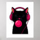 Black Cat with Pink Phone Head – Funny Minimalist Poster