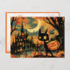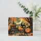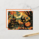 Black Cat with Pumpkin Bucket by the Castle Vykort