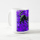 This purple black cat mug features a playful hand-drawn kitty chasing a ball of yarn on a vivid neon-purple background, perfect for cat lovers who enjoy bold, artistic designs. With its energetic doodle style and bright colors, it adds fun, whimsical feline energy to every coffee or tea break.