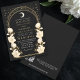 Fånga en tidlös elegans med den kelestialinspirerade inbjudan från Art nouveau! Med en strålande guldbåge, delikata vita blommor och skuggande stjärnor mot en svart bakgrund anger den här designen tonen för ett sofistikerat firande. Perfekt för bröllop, galas och milstolpar! Observera att guld på den här produkten INTE är äkta folie, utan tryckt platt.