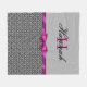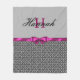 Black Chandelier Damask and Rosa Bow Monogram Fleecefilt