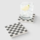 The real stone coaster has a black checkerboard pattern. It's show in marble but other stone choices are available.
