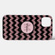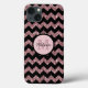 En söt, chic fodral-design för henne med svart chevron mönster som växlar med pastellskugga av ro rosa glitter-chevoner (tryckt fotoeffekt). Ett snyggt monogram på en cirkelbanderoll som är inbäddad i svart står i centrum av designen. Namn i trendigets svarta skript täcker över den ursprungliga texten och skapar en elegant- och gigabaserad design som är unik och en av en vänlig personlig genom att du anpassar texten. Bilden från glitter är en platt utskriven fotoeffekt som inte innehåller något egentligt glitter eller metallämne. Monogramgalleri ©