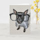 Ett foto av en liten söt chihuahua med stora glasögon och en grått hoodie. Gaston the smart Chihuahua