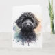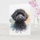 En söt design av en svart Cockapoo med vattenfärgbakgrund.