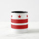 Njut av dina favoritdrycker med kombinationen mugg med flagga Washington, D.C.! Den här kombinationen mugg är utformad med stor noggrannhet, och är inte bara ett kärl för kaffe eller te. Den är en firande av det unika arvet och pridet i Washington, D.C. Den djärva designen visar stolt ett lodrät rand på den lämnat sidan, med två ränder vitt och rött på vågrät. Centrerad i det röda rand är en vit femuddig stjärna som symboliserar nationens huvudstad och dess betydelse. Oavsett om du börjar din dag med en stark kopp av kaffe, njuter av te med vänner eller bara visar din kärlek för Washington D.C., tillför den här kombinationen mugg en äkta beröring av D.C.-kulturen till din rutin. Mugg är av högkvalitativ keramik och är designat för att vara både tålig och visuellt tilltalande, så att det blir en omhuldad del av dina köksessens. Den sjudande utformningen och den hårda konstruktionen gör det till perfekten att uttrycka din beundran för Washington D.C. med varje sipp.