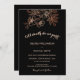 Copper / rose gold line art floral cherry blossoms on a black background. With a Gothic Wedding text: "till death do us part". Dark wedding aesthetic invitation with an elegant handwritten font.