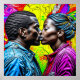 Personligens romantiska flirtkort. Söt förskräcker och färglös digital konst med afrikansk-amerikanska par kyssar.