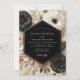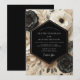 A dramatic floral composition featuring deep black and creamy white blooms alongside earthy, muted foliage. The opulent arrangement evokes a sense of vintage romance and sophisticated evening elegance. This design hints at anemones and richly textured petals.