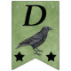 This flag shaped bunting Happy Birthday banner is a grungy green colour with standing black crows and two black stars on each flag. Customise the Happy Birthday text and birthday year with the templates.