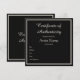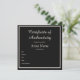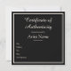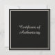 Black and ivory Certificate of Authenticity card for art in a square format.