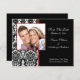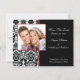 Lägg märke till ditt framtida bröllop med våra Spara datum meddelande-kort med ett vackert svart och vitt dammmönster med ett rött trimmat foto ram. Lägg bara till din bröllop-information och ditt foto och du är redo att gå! Matchningsförseglingar för frimärke och kuvert som finns i vår butik