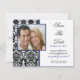 Lägg märke till ditt framtida bröllop med våra Spara datum meddelande-kort med ett vackert svart och vitt dammmönster med mörken royal blå trimmad bild ram. Lägg bara till din bröllop-information och ditt foto och du är redo att gå! Matchningsförseglingar för frimärke och kuvert finns i vår butik. Finns i ett stort sortiment av färger och du kan också plocka ditt eget färg!
