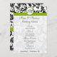 Vintage Modern Black and White Blommigt Damask-mönster med Apple Grönt Trim Wedding-inbjudningar. Perfekt för Rococo Baroque, Medieval Renaissance, Art Deco Art nouveau, Roaring 20:e Gatsby, Victorian Bröllop eller Elegant Farmhouse Bröllop Themes Venues.