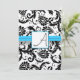 Black Damask Swirls Bright Aqua Razed Trim Inbjudningar