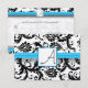 Black Damask Swirls Bright Aqua Razed Trim OSA Kort