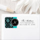 Black Damask Teal Glitter tryckt Monogram Returadress Etikett