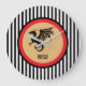 This medieval inspired clock features a black dragon with your initials in black, accented with red and black. The design is set against a background of black and white stripes, and the clock's hand is gray. The gold is a printed color only and does actually contain foil or metal. Harken back to the Middle Ages with this cool looking clock. Make sure to type your intials in the Personalize section.