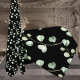 En enkel halslips i elegant bröllop med grönt eucalyptus sprigs i ett lätt mönster mot en fast svart bakgrund.
