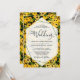 Tema för blommigt med gult Black Eyed Susan blommor och grönt löv mönster, en solig och ljus trädgårdsinspirerad bröllopsinbjudan.