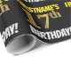 Den här pappra designen innehåller ett meddelande som "FIRSTNAME's 17:e BIRTHDAY!", där "17:e" har utseendet faux/imitation guld-liknande färg och med namn och "BIRTHDAY" i ett roligt, fet stil. Namn är anpassade och färgaden är svart. Att packa pappert som detta skulle kanske kunna användas när man fyller på födelsedagskalkyl som ges till någon i firande på deras sjuttonde födelsedag. [~Z0000203]