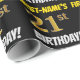 Den här pappra designen innehåller ett meddelande som "FIRST-NAMN's 21:a BIRTHDAY!", där "21:a" har ett utseende som liknar guld och liknar färg, och med namn och "BIRTHDAY" i ett roligt, fet stil. Namn kan vara personlig, och bakgrunden är färgad svart. Att packa pappert som detta skulle kanske kunna användas när man fyller på födelsedagskalkyl för någon i firande på deras tjugoförsta födelsedag. [~Z0000203]