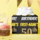 Den här pappra designen innehåller ett meddelande som "FIRST-NAMN's 50:e BIRTHDAY!", där "50:e" har ett utseende som liknar guld och liknar färg, och med namn och "BIRTHDAY" i ett roligt, fet stil. Namn kan vara personlig, och bakgrunden är färgad svart. Att packa pappert som detta skulle kanske kunna användas när man fyller på födelsedagskalkyl som ges till någon i firande på deras femtioårsdag. [~Z0000203]