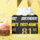 Den här pappra designen innehåller ett meddelande som "FIRST-NAMN's 81:a BIRTHDAY!", där "81:a" har ett utseende som liknar guld och liknar färg och med namn och "BIRTHDAY" i ett roligt, fet stil. Namn kan vara personlig, och bakgrunden är färgad svart. Att packa pappert som detta skulle kanske kunna användas när man fyller på födelsedagskalkyl som ges till någon i firande på deras åttio första födelsedag. [~Z0000203]