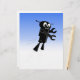 Flygroboten leksak i blå himmel. Ursprungligt tecknade figurer. Digital teckning.