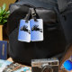 Flygroboten leksak i blå himmel. Ursprungligt tecknade figurer. Digital teckning.