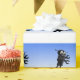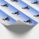 Flygroboten leksak i blå himmel. Ursprungligt tecknade figurer. Digital teckning.
