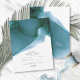 En bakgrund i abstrakten som påminner om flytande bläck i skuggor från djup teal genom cyan och vitt är bakgrunden till elegant handskriven manustext och moderna designlayouter i biet i denna vackra bröllop-svit. Det här bröllopet OSA innehåller ovanstående och en mall för att lägga till din egen relevanta händelseinformation. Sök i ID762 om du vill se alla koordinerande delara i den här uppsättningen.