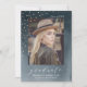 Modern och chic inbjudan till studentfest av foton med ett elegant-skript och faux guld-folie konetti mot en marin blå vattenfärgsbakgrund. Anpassa inbjudan till student klassår, namn och skola på framsidan. Lägg till din studentfest på baksidan.