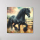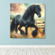 Black Fresian Horse Pasture Rustic Fence Canvastryck