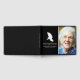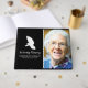 Elegant bok av kondoleans (minnesbok) med ett foto av din älskade, en svart bakgrund som kan ändras till vilken färg som helst, en vit begravningsduva och en personlig textmall med namn och data.